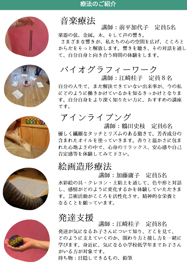| 療法 | 開催日 | 定員 | 講師 |